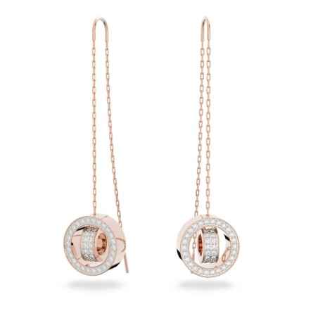 Eleganza discreta per il pendente che alterna metallo lucido placcato oro rosa e pavé di Clear Crystal. Il raffinato profilo a cerchi intrecciati si presta per qualunque occasione, e la sua brillantezza soffusa è una vera e...