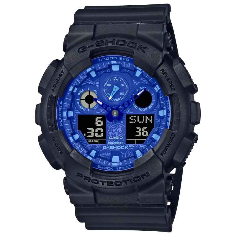 Assolutamente resistente, audacemente blu, con motivi paisley: il G-SHOCK con un tocco di robusta raffinatezza. In una sorprendente combinazione di colori blu e nero, la serie Paisley Blue presenta quadranti stampati con l'iconico motivo reso popolare dall'eleganza pratica della bandana.