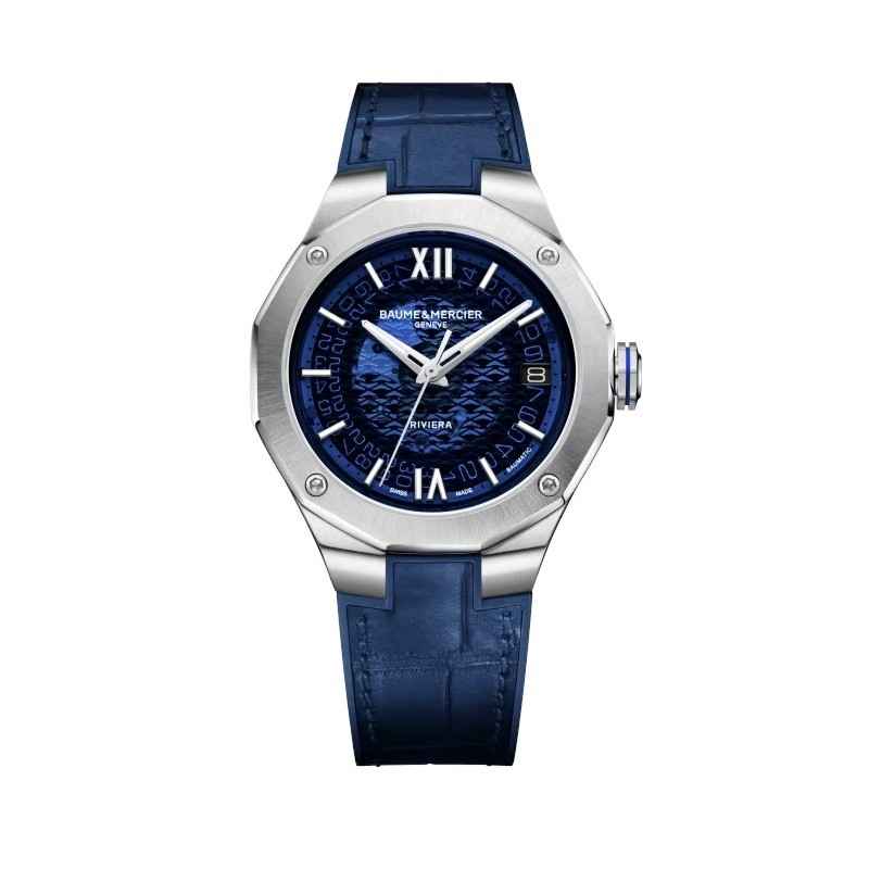 Per i suoi 50 anni, il Riviera torna nel 2023 in tre versioni inedite da 39 mm di diametro, conservando la lunetta dodecagonale a 12 lati munita di quattro viti e l’intramontabile stile sporty-chic. Queste versioni sono dotate inoltre di un movimento di Manifattura Baumatic dalle comprovate performance (montato fin dal suo lancio nel 2017), visibile attraverso il quadrante in vetro zaffiro fumé simbolo del Riviera Baumatic. Il design originale è riconoscibile, come il desiderio di abbracciare la contemporaneità. Ultime nate della collezione Riviera, le tre nuove declinazioni da 39 mm di diametro conservano nel loro DNA la potenza evocativa del modello originale del 1973.