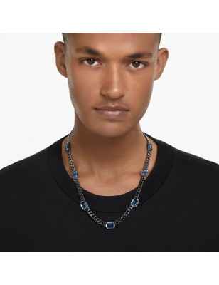 Collana Millenia a contrasto, unisce tonalità intense e scure per dar vita ad un iconico e suggestivo look. La massiccia catena placcata rutenio nero presenta cristalli blu denim all-round con doppia incastonatura a griffe. Un gancio a moschettone e un singolo Swarovski Zirconia all'estremità dell'allungamento completano il design. Un look audace da indossare con disinvoltura.