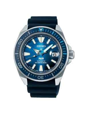 L'orologio subacqueo professionale SRPJ93K1 PADI Special Edition "THE GREAT BLUE" è dotato del calibro 4R35, che offre una riserva di carica di 41 ore. Questo modello è composto dall'iconica cassa King Samurai in acciaio inossidabile con lunetta girevole unidirezionale e da cinturino in silicone con scritta "PROFESSIONAL ASSOCIATION OF DIVING INSTRUCTORS".È resistente all'acqua fino a 200 metri. Il motivo del bellissimo quadrante riflette la superficie dell'Oceano vista da sotto l'acqua, con la luce del sole che scende e la superficie dell'acqua in movimento.