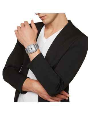 Essenziale, geometrico e insieme sinuoso: l'orologio da uomo solo tempo The B è un inno al design e all'originalità. L'attenzione alle proporzioni e ai dettagli ha portato alla creazione di un orologio dall'estetica minimale, con cassa squadrata ultra sottile con gli angoli arrotondati e bracciale integrato. L'acciaio bilux lucido e satinato è accostato al quadrante silver con effetto sunray a agli indici e sfere IP gun.