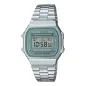 Questo Casio Vintage incarna lo spirito degli orologi digitali che hanno fatto storia. Le sfumature grigie del quadrante e il design squadrato creano un look retro perfettamente attuale. La combinazione di funzioni classiche come cronometro e allarme con l'iconica illuminazione elettroluminescente blu-verde mantiene intatto il fascino vintage, mentre il bracciale in acciaio garantisce durabilità e comfort quotidiano.