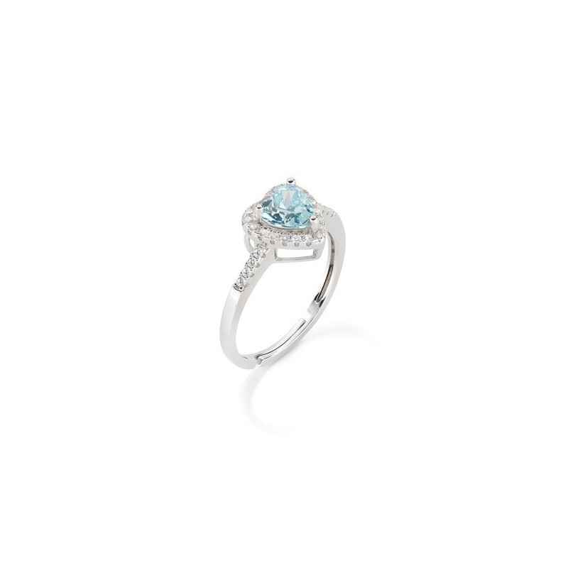 Anello Cuore in Argento 925 rodiato con zirconi Acqua Marina e bianchi della collezione Solitario.