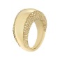 Moderno ed elegante, questo anello cattura la tendenza delle forme organiche. La sua silhouette liscia e bombata in metallo placcato oro lucido è completata da un scintillante Pointiage in cristalli.