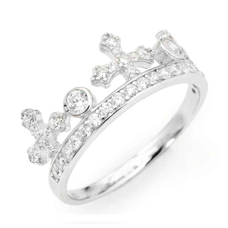 Anello Corona in Argento 925 rodiato con zirconi bianchi, misura 14 della collezione Diamonds.