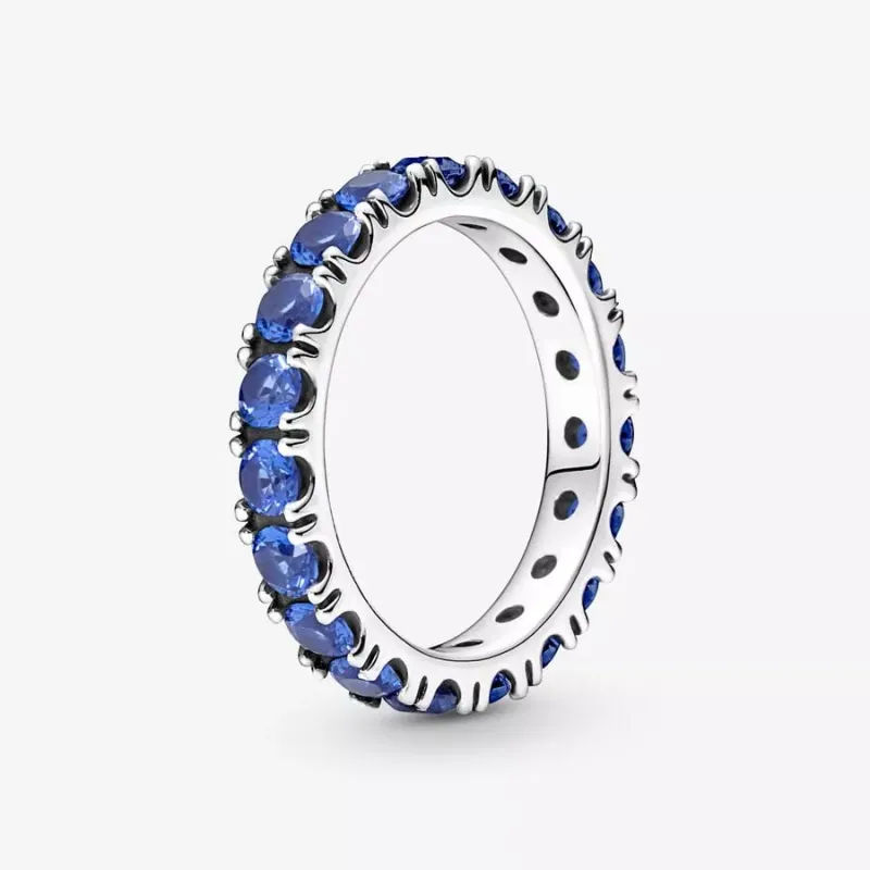 Punta sullo stile classico con questo anello Eternità scintillante. Rifinito a mano e realizzato in argento sterling 925, l’anello presenta una fascia interna decorata da cristalli blu sfavillanti creati dall’uomo.