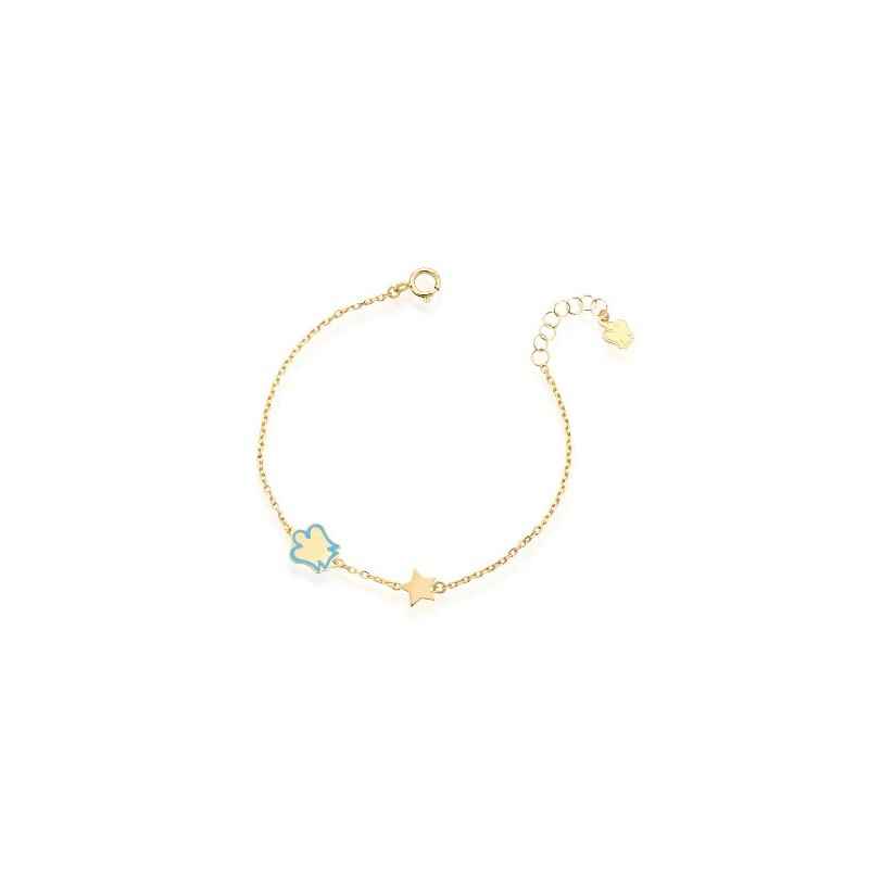 Bracciale bambino in Oro giallo con Angelo azzurro e Stella.