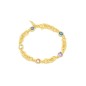 Perfetto da abbinare con gli altri gioielli Giovanni Raspini, il bracciale Loop piccolo alterna una catena in argento dorato martellata con cinque cristalli colorati: due azzurri, uno verde lime, uno color cipria e uno color glicine. Le gemme, a giorno con taglio rotondo, sono incastonate da una fascetta.