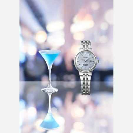Il nuovo Presage Cocktail SRE007J1 si ispira al cocktail Sky Diving, la cui texture leggera del quadrante richiama l'azzurro del cielo. Il quadrante è sottile e delicato con una finitura ordinata. Diversi strati di un rivestimento trasparente vengono applicati al quadrante prima di essere levigati per un effetto abbagliante. Otto...