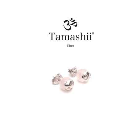 Coppia di orecchini originali Tamashii® realizzati con pietre naturali di Quarzo rosa e Argento 925/°°° rodiato. Sono progettati per garantire la massima qualità e durevolezza. La coppetta presenta la sillaba traforata “OM” (in...