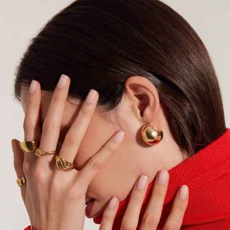 Gli orecchini Hoop sono in acciaio lucido color oro e hanno una forma ovale bombata. Fondamentali per arricchire il proprio look con un accessorio di tendenza.