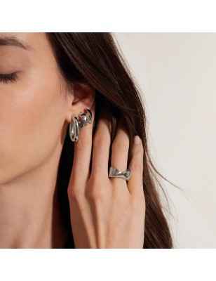 Gli orecchini B Whisper, anche nella loro dimensione più piccola, rappresentano una scelta di stile ben definita. L'acciaio lucido, estremamente sottile e leggero, assume una forma fluida, la superficie diventa così irregolare e sinuosa e crea delicati riflessi di luce che illuminano il viso.