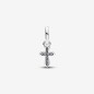 Charm Mini Pendente Cross Pandora ME in Argento a forma di croce presenta lati sfaccettati ed è decorato da microsfere su un lato e da pietre scintillanti sull'altro incastonate all'interno di linee in rilievo che creano un effetto intrecciato.