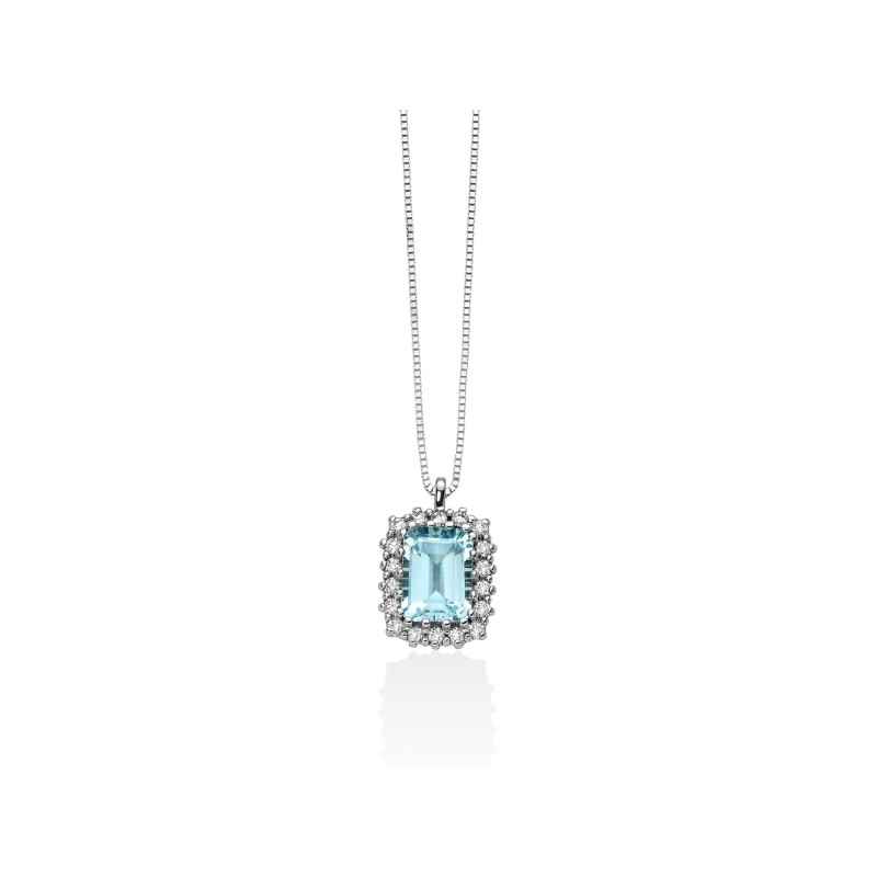 Collana con diamanti e Acquamarina ottagonale CLD3927
