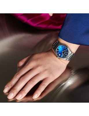 Il Frederique Constant Highlife Ladies Automatic FC-303N2NH6B combina armoniosamente stile classico, sportivo e moderno. La cassa in acciaio inossidabile da 34 mm, lucida e satinata, si unisce a un elegante quadrante blu navy, arricchito da un motivo a globo in rilievo, rendendolo un segnatempo di tendenza nell'alta orologeria contemporanea. Il bracciale in acciaio flessibile e durevole può essere facilmente sostituito con il cinturino in gomma blu navy incluso, offrendo versatilità per adattarsi a qualsiasi stile o occasione. Con un movimento automatico affidabile e una riserva di carica di 38 ore, questo orologio è perfetto per chi cerca eleganza e funzionalità in un unico accessorio.