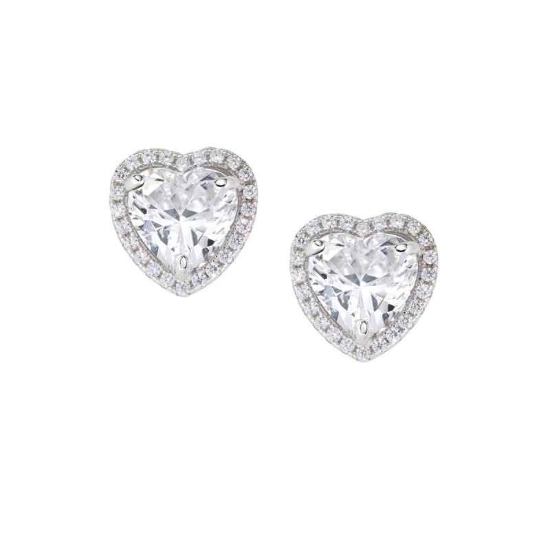 Orecchini Big Diamonds Cuore bianco in Argento 925 rodiato e zirconi bianchi della collezione Diamond.