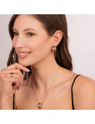 Orecchini a cerchio Bronzallure in lega Golden Rosé, placcati oro rosa 18kt con due rivière in cubic zirconia luminose che creano un design ad onda.