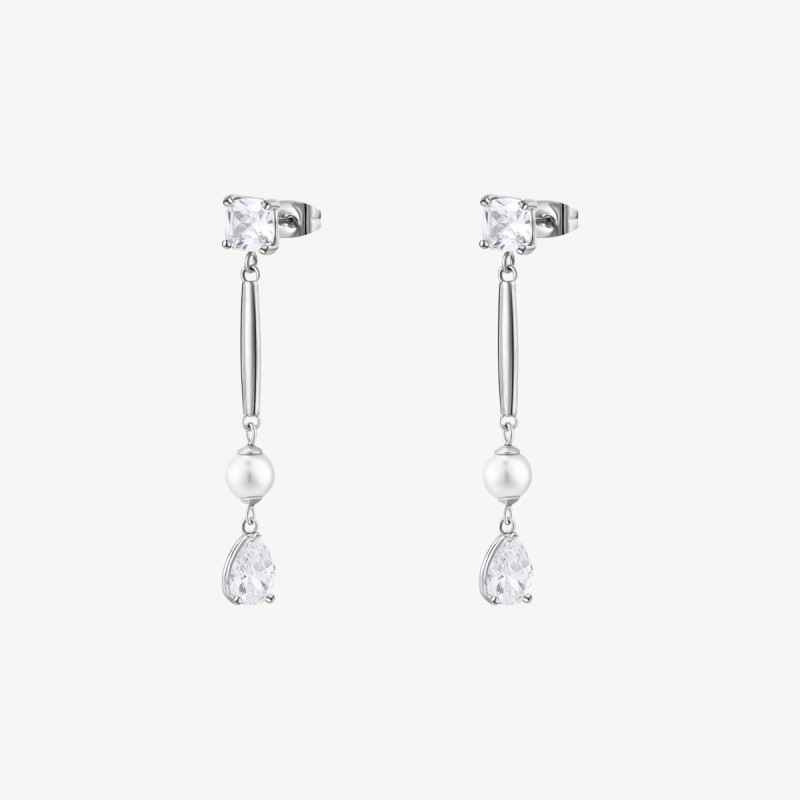 Orecchini pendenti in acciaio 316L con perle di conchiglia e cubic zirconia