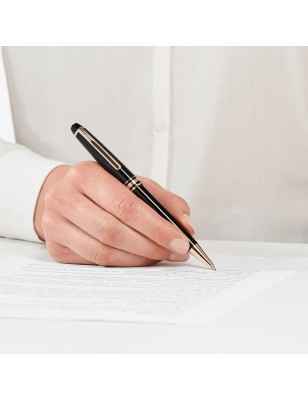 La collezione Meisterstück Rose Gold-coated Classique presenta un design che ha scritto la storia. Introdotta nel 1924 con un nome che significa "capolavoro", Meisterstück è diventata un simbolo della scrittura di lusso. Il corpo e il cappuccio sono realizzati in pregiata resina nera, recante l'iconico emblema Montblanc intarsiato in bianco sulla parte superiore del cappuccio.