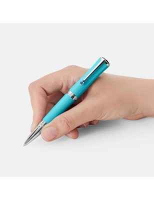 L’edizione enfatizza uno dei suoi colori preferiti, il turchese, nella pregiata resina del corpo e del cappuccio, mentre la silhouette sottile ed elegante riflette la bellezza aggraziata di Maria Callas. Per evocare la sua patria circondata dal mare, la Grecia, la clip finitura platino è impreziosita da una pietra sintetica il cui colore ricorda il luminoso blu turchese del Mar Egeo. Il dettaglio di un costume tratto dalla “Norma” di Bellini, uno dei suoi ruoli più iconici per quanto riguarda il “bel canto”, si riflette nel motivo a foglie di alloro che avvolge il cono finitura platino dell’edizione, assieme alla goffratura della firma del rinomato soprano.