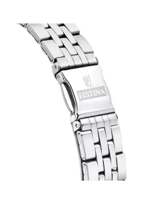 FESTINA Mademoiselle F16867/4: l'essenza della femminilità francese. Un raffinato orologio donna con cassa da 32.5mm in acciaio con zirconi, quadrante azzurro e bracciale in acciaio 316L, che unisce eleganza parigina e dettagli glamour
